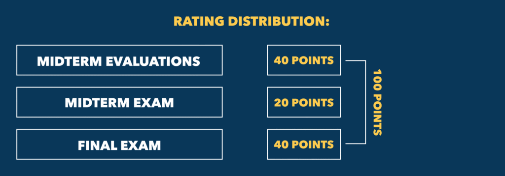 4. Professor’s right: The professor may redistribute the 60 points of the midterm assessments based on his/her own views and decide on the number of assessment components and the deadlines for coursework.