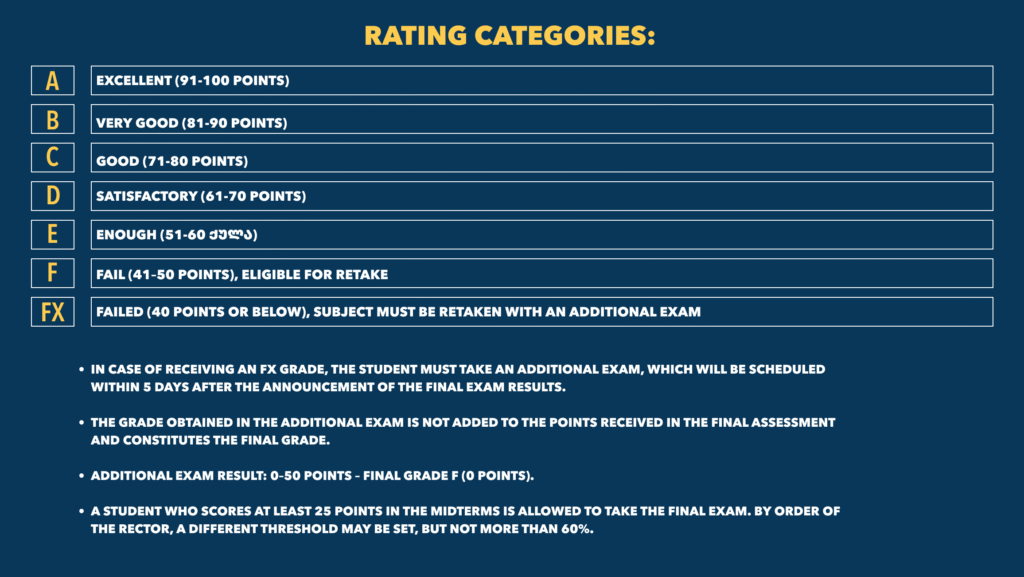 8. Additional exam: In case of receiving an FX grade, the student must take an additional exam, which will be scheduled within 5 days after the announcement of the final exam results.